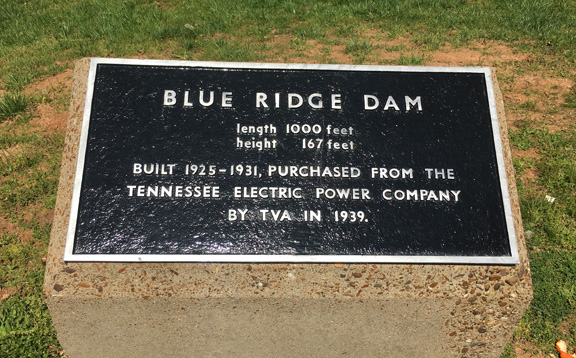 The Blue Ridge Dam is only one of the dams comprising the Tennessee Valley Authority system constructed in the late 1930’s.