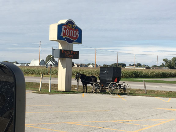 We toured the Amish community and learned about the Old Order Amish, and the New Order Amish. Steel tired tractors are OK with the Old Order, rubber tired tractors are OK with the New Order. New Order Amish kids can ride rubber tire bicycles, and so forth. When it comes to electricity neither the Old or New Order Amish will have anything to do with it. Hence I was really intrigued with the pneumatic air-powered fans for air movement, skylights for lighting, and gas-lights in the Amish store, Stringtown.